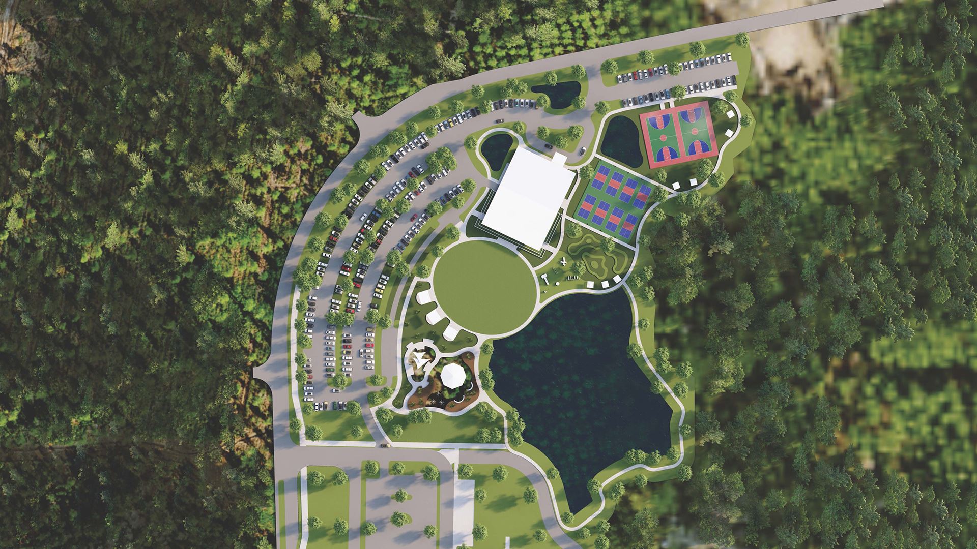 - Northwest Community Park: Fields for baseball and softball, courts for pickleball and sand volleyball, a community center with a designated area for library services, and picnic pavilions.