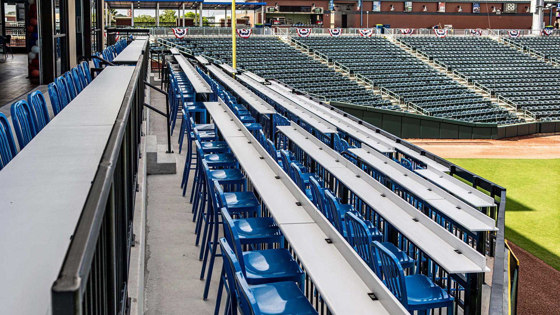 Key features include the new Right Field Building, the PNC Home Plate Club, and the inviting New Center Field Front Porch, positioned as the primary entrance for fans and a focal point of activity. These enhancements will welcome fans to the ballpark in unprecedented ways. The new multi-level building in right-field houses the Jumbo Shrimp VyStar Credit Union Souvenir Store on the street level and offers a versatile space for banquets and meetings on the concourse level, further enhancing downtown Jacksonville’s offerings.